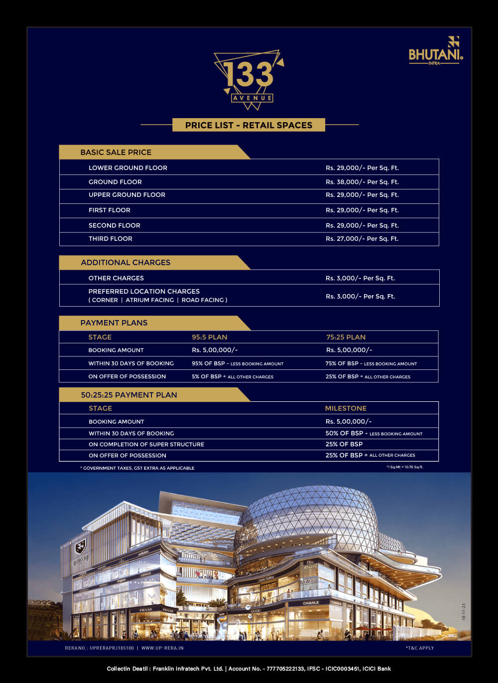 As developers and retailers, we at Bhutani Infra strive to break away from the conventional definition of retail and create a wow factor by offering unparalleled experiences that delight our customers. Avenue 133 is a testament to this vision, designed to enhance the customer experience with a focus on comfort and grandeur.