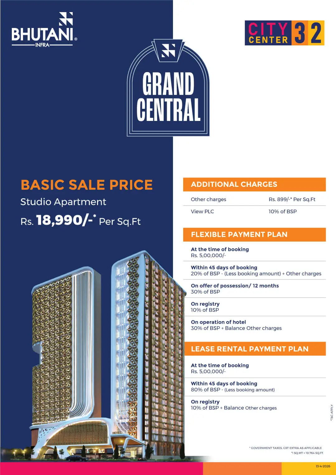 Whether you're looking for an exclusive living experience or a future-ready investment, Bhutani Grand Central delivers both with an unmatched value.